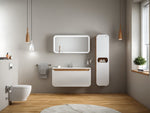 The Pion 120cm white oak base cabinet delivers modern minimalism and ample space to organize your bathroom.
